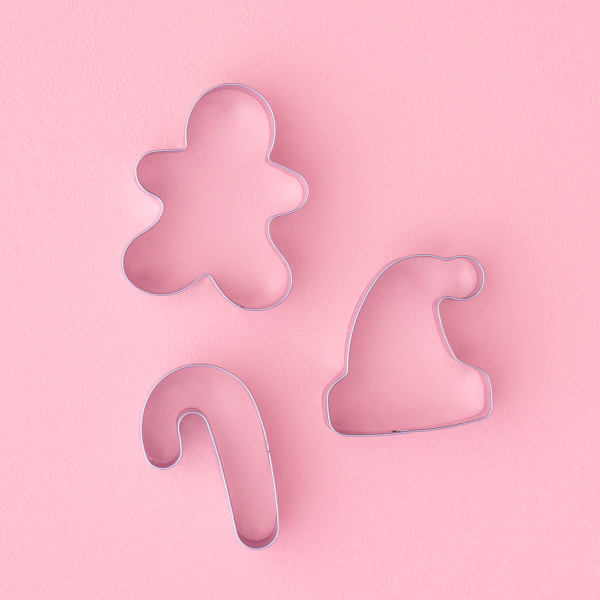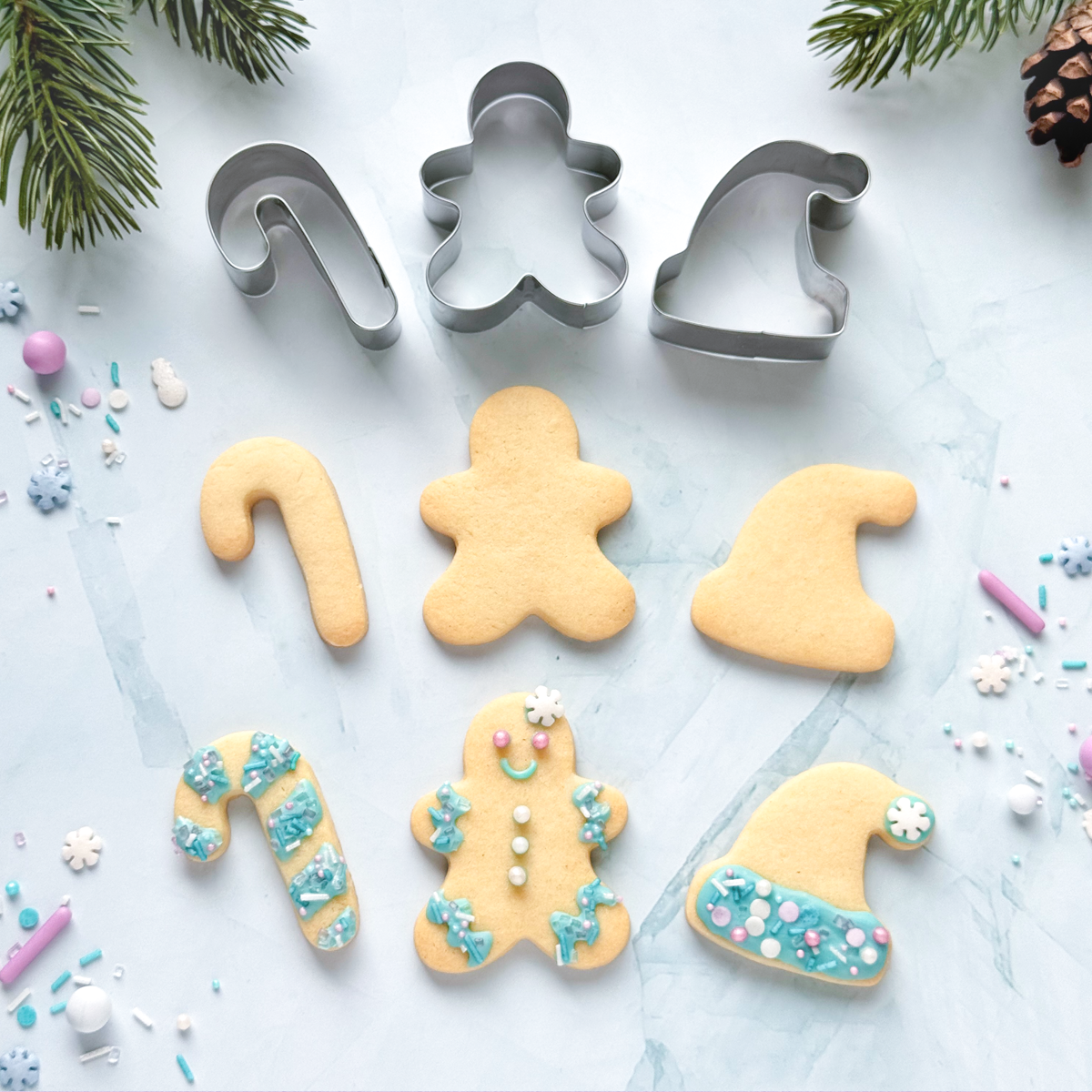 3x koekjessnijder (kerstmuts, peperkoekmannetje en zuurstok)