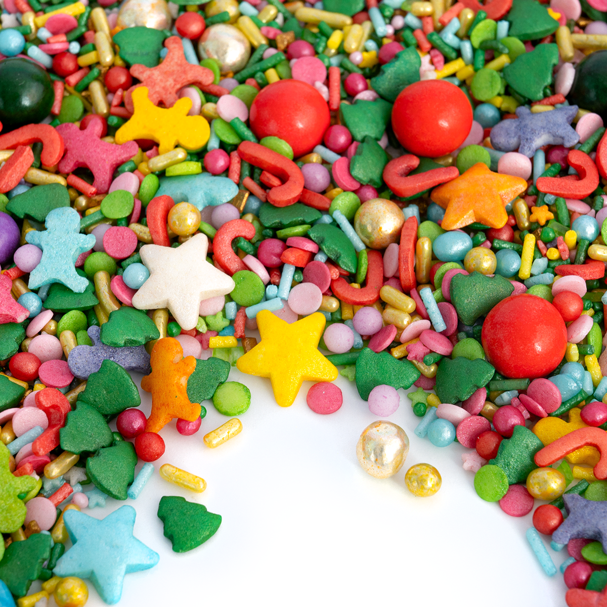 In de vrolijke ChristmasRush zitten: bontgekleurde grote sterren, lieve peperkoekmannetjes in alle kleuren, rode zuurstokken en donkergroene dennensprinkels. Samen maken ze van jouw koekjes hét kleurrijke kersthighlight – perfect om te bakken, snoepen en te krioelen met de hele familie.