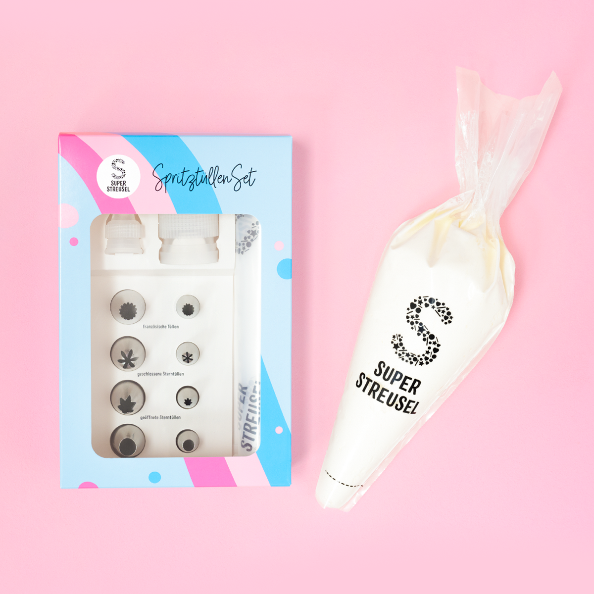 Tover de perfecte toefjes op je cupcakes, taarten en gebak! Spuit gewoon crèmes, slagroom of gebak met 8 verschillende spuitmondjes. Sterren, krullen, bloemen - geen probleem! Dankzij de slimme adapter kun je eenvoudig je spuitmondjes verwisselen zonder eerst de spuitzak leeg te maken. Nu alleen nog Super Streusel toevoegen en woooow!