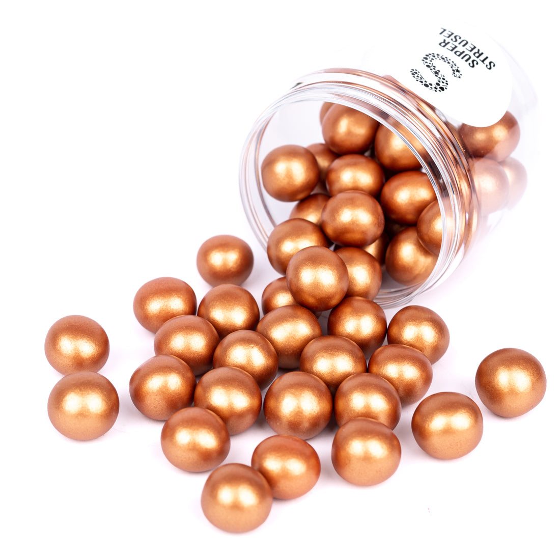 Eenheid prijs 7,62 € Per 100gOnze nieuwe leden van de XL CrispyBalls-familie: Hartelijk welkom, jullie koperkleurige schatten! 🧡 Onze CrispyBalls zijn er voor iedereen die echt dol is op crunch – ze zijn de ultieme Super Streusel. Groot, rond, met een prachtige pastelachtige koperglans aan de buitenkant én een superkrokante binnenkant! Deze XL CrispyBalls hebben een heerlijke crunchy kern, omhuld met zachte chocolade. Zo'n bal (meer dan twee keer zo groot als onze gewone ChocolateBalls in de mixen!) is letterlijk de kers op de taart voor je cupcakes of cakes. Meer perfectie bestaat niet!