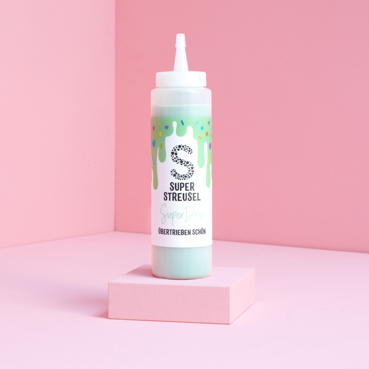 Verwarm je SuperDrip Mint Green snel in de magnetron of in een bain-marie. Gebruik het dan direct op muffins, koekjes, cakes en ijs. Of maak je eigen taarttoppers - het is supermakkelijk! SuperDrip droogt veel sneller dan chocolade en is daarom de perfecte basis voor je sprinkles.