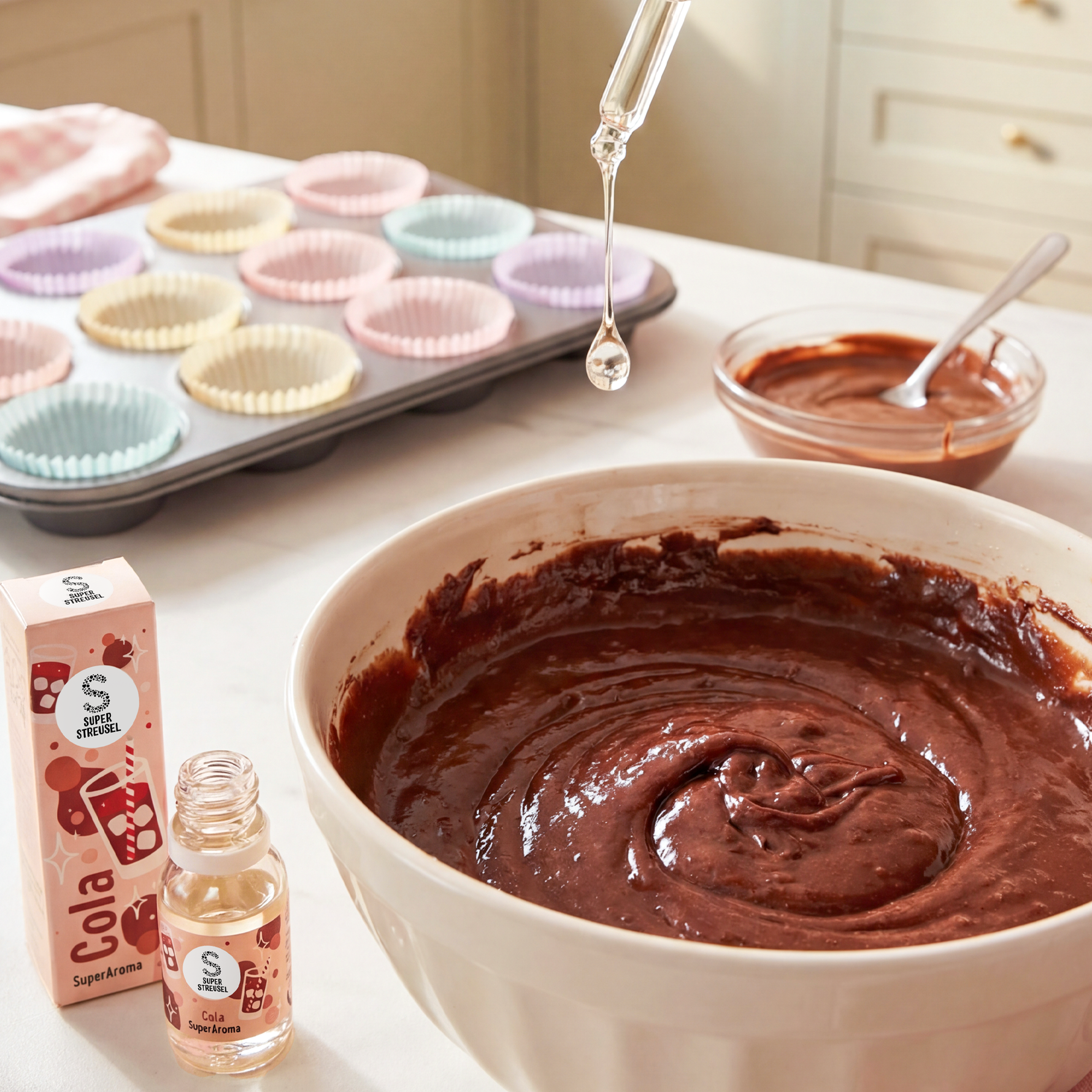 Doseringsadvies: Voor 12 muffins gebruik je ongeveer 5 pipetten Flavour – afhankelijk van de gewenste intensiteit kun je de dosering eenvoudig aanpassen.