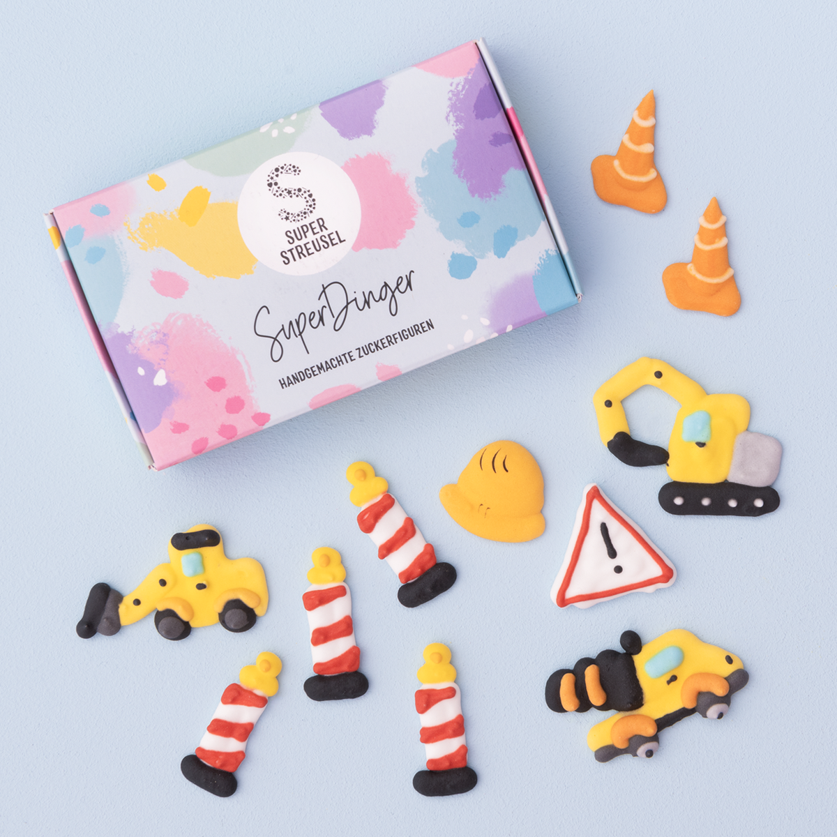 De suikerfiguren zijn fantastisch op verjaardagscupcakes, je kunt ze verwerken in je breekchocolade of laten pronken op cakesicles. Zelfs je ingestorte tulband krijgt met de SuperDinger de perfecte graafmachinetouch! En wij zweren bij de SuperStreuselEerZweer: geen moeite, maximaal effect :)