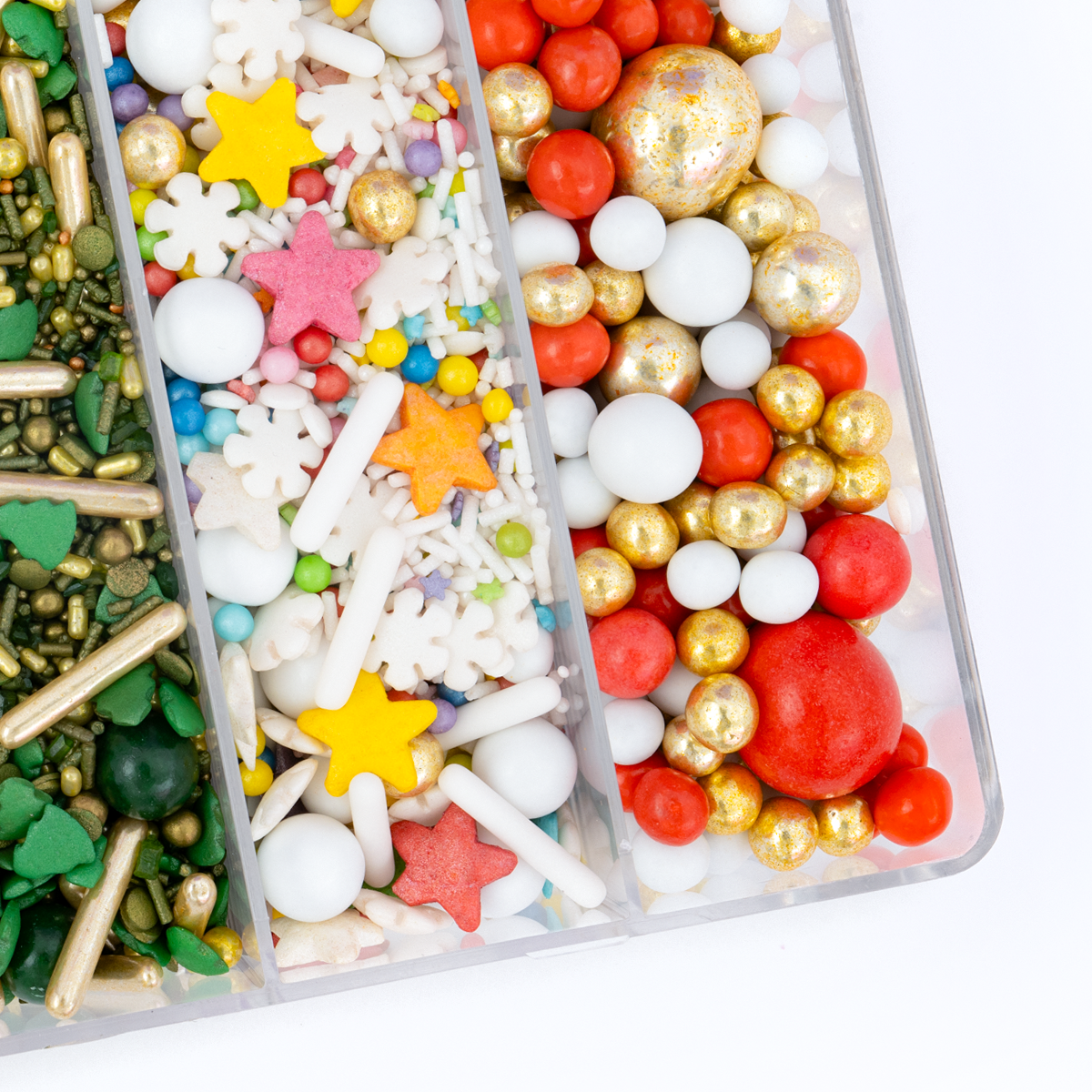 Eenheid prijs 9,23 € Per 100gHoe kleurrijker de koekjesplaat, hoe mooier hij is! Elk kerstkoekje verdient zijn eigen speciale uitstraling, dus ga ervoor met de hagelslag! En je hoeft er niet eens één te kiezen. Je hebt zes prachtige strooimixen met alle kerstmotieven die je koekjes nodig hebben: sterren, sneeuwpoppen, dennenbomen, zuurstokken, rendieren, sneeuwvlokken, hulstblaadjes - het is er allemaal! Supertip: De SuperBox is een geweldig cadeau voor de kerstperiode en past perfect in een grote kerstsok.