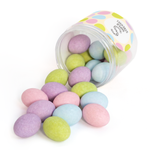 Ingrediënten: melkchocolade (suiker, volleMELKpoeder, cacaoboter, cacaomassa, emulgator: SOJAlecithine, E476; aroma: vanilline), pralinevulling [suiker, plantaardige vetten (palm), WEIPOEDER, cacaopoeder, magereMELKpoeder, HAZELNOTEN, volleMELKpoeder, emulgator: SOJAlecithine; aroma’s: vanilline], suiker, stabilisatoren: arabische gom, sacharose-esters van vetzuren; rijstzetmeel, maltodextrine, kleurstoffen: spirulina-extract, curcumine, karmijn; glansmiddel: carnaubawas; kan sporen van TARWE en NOTEN bevatten.