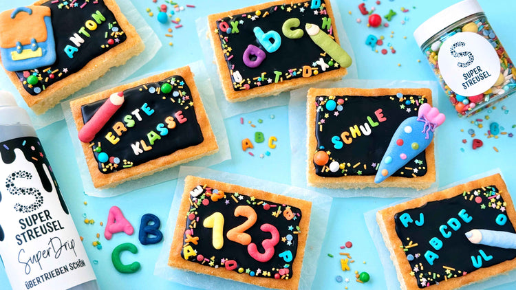 SuperStrees zien er geweldig uit op cupcakes, de schoolstarttaart of cakesicles. En we zweren bij SuperStreuselEhrenSchwör: nul moeite, maximaal effect :)