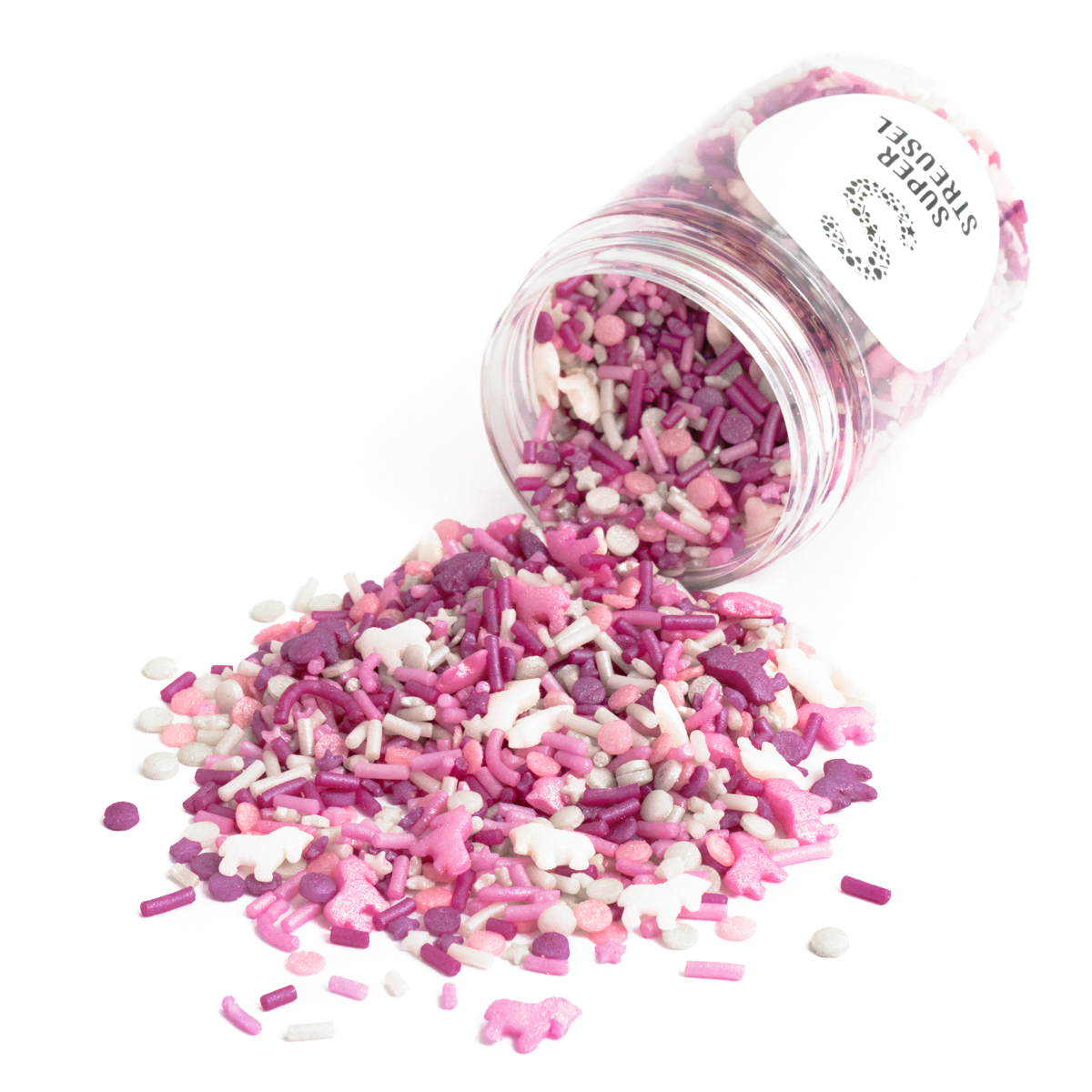 Kleine én grote eenhoornfans zullen stralen van vreugde wanneer ze deze roze, witte en lila eenhoornsprinkles ontdekken, gecombineerd met glinsterende sterretjes en confettisprinkles. Perfect voor een kinderverjaardag, een themafeest of gewoon een magische dag! 🦄✨
