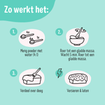 - 4 delen poeder + 1 deel water (bijv. 4 el + 1 el water)
