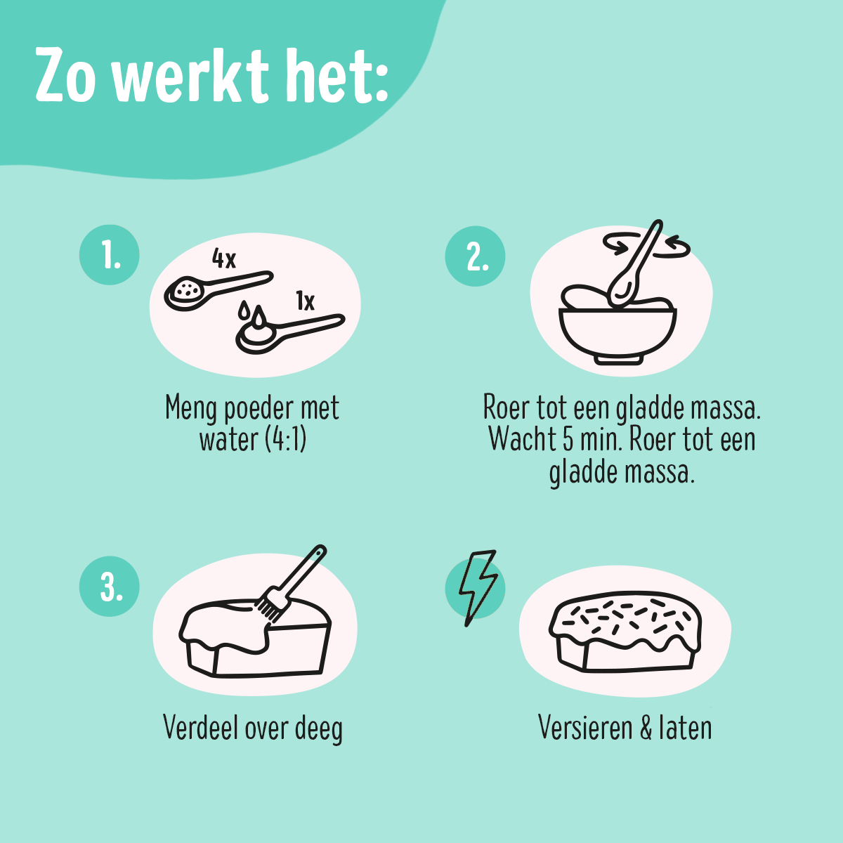 Tip uit de community: De SuperGlaze is perfect voor onderweg – gewoon roeren, op de supermarktcake aanbrengen, strooisels erop en iedereen denkt: “Heb je die echt zelf gemaakt?”